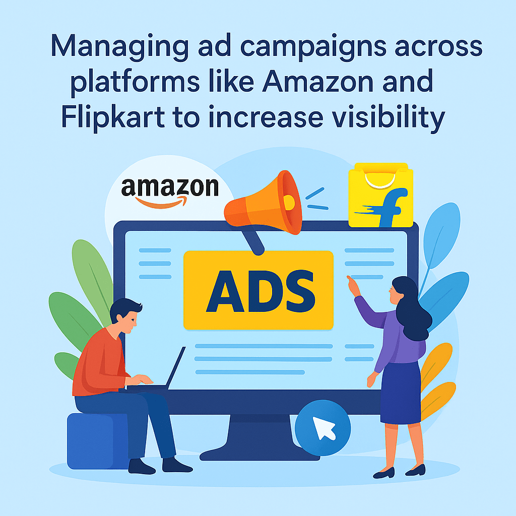 Managing ad campaigns across platforms like Amazon and Flipkart to increase visibility.